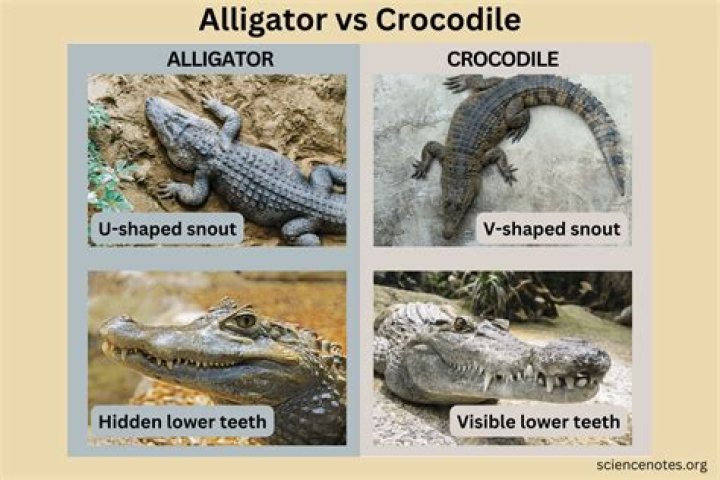 Remember that alligators are typically a darker color and have U-shaped snouts, flashing only their upper teeth when their mouths are closed. Crocodiles on the other hand are a lighter green and have the V-shaped snout that’s longer and narrower.What is short for alligator?