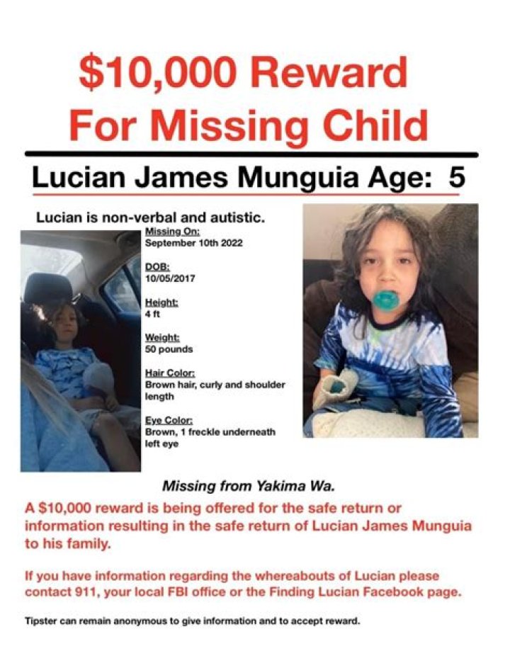 The child was last seen at Sarg Hubbard Park in Yakima on Sept. 10. The following day, police released an image of Lucian and asked the public to provide any video or images from the park. A $10,000 reward had been offered for information to help find Lucian, CBS affiliate KIMA reported.