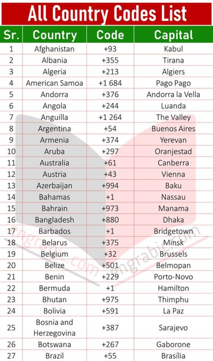 | Serial No. | Country Name | Dialing Codes |
